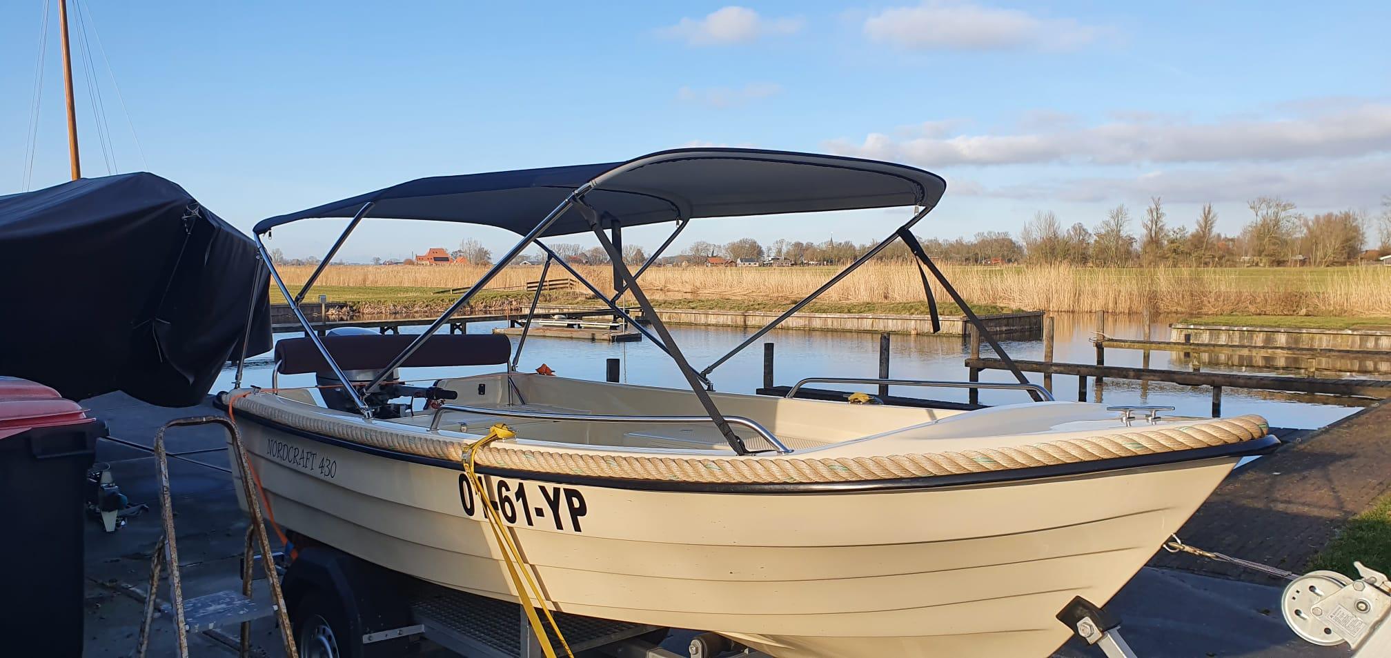 Deze sloep is door ons voorzien van een op maat gemaakte Bimini.